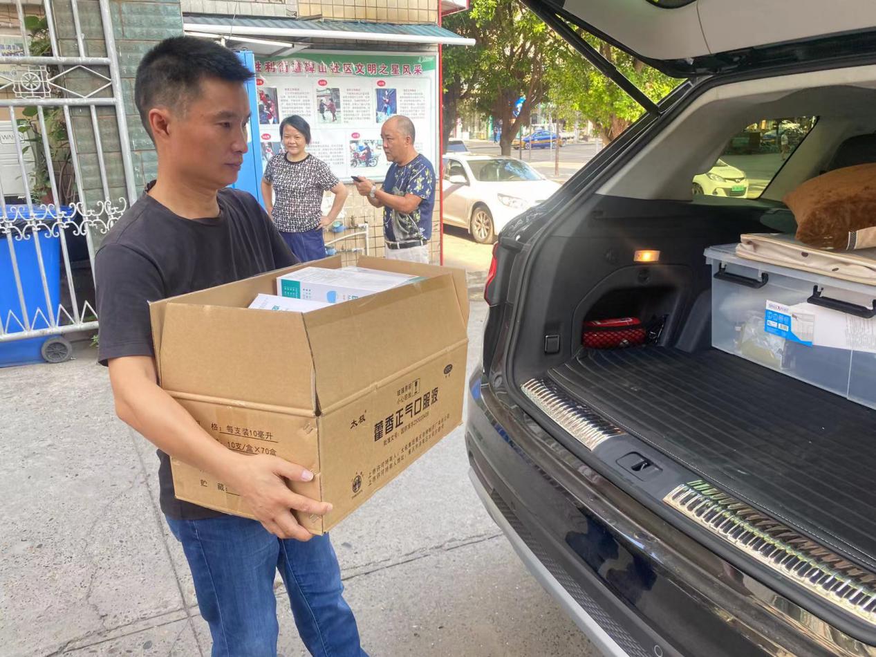 鴻達(dá)設(shè)計(jì)公司特購買礦泉水、藿香正氣液和口罩贈送給雙橋收費(fèi)站、雙才收費(fèi)站、椑木收費(fèi)站、郭北收費(fèi)站、田家收費(fèi)站、小河口收費(fèi)站、石子國省干道等7個卡點(diǎn)的工作人員。